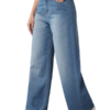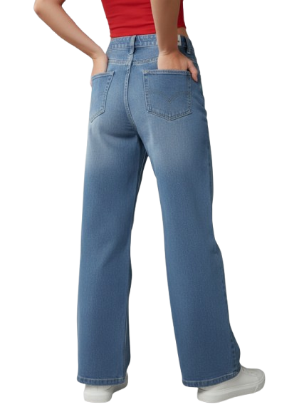 High-waisted straight-leg or wide-leg jeans with a vintage-inspired silhouette.