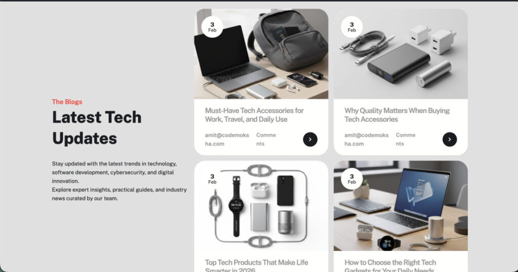 The blog section supports content-driven engagement and SEO growth. It allows the platform to share technology updates, product guides, and industry insights—building authority and trust while keeping users engaged beyond product pages.