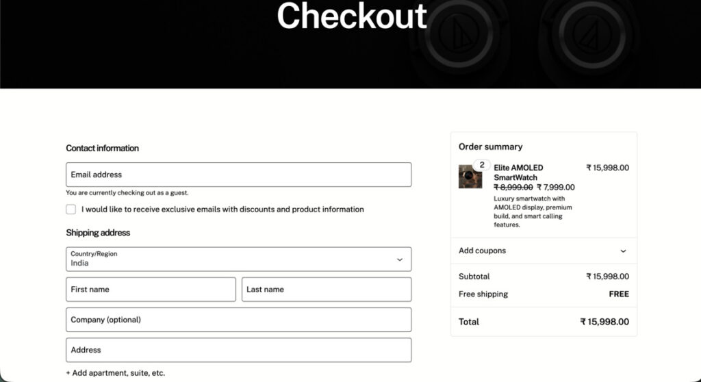 - Minimal and distraction-free checkout layout